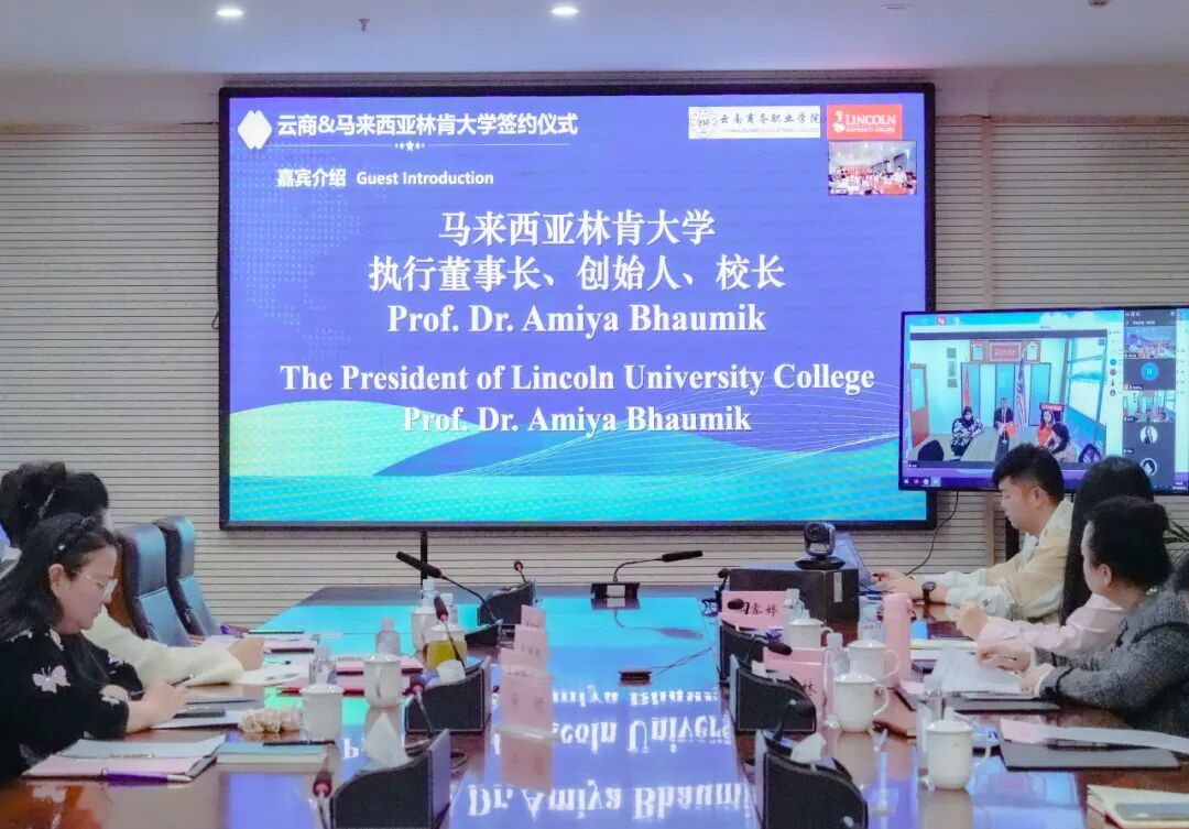 签约仪式在庄重而温馨的氛围中拉开帷幕。透过高清视频会议系统,两校领导实现了“面对面”的亲切交流。Amiya Bhaumik教授首先向Ky开元集团全体师生致以诚挚的问候,对我校在人才培养、社会服务等方面取得的办学成就表示高度赞赏。他详细阐述了林肯大学学院的办学特色、师资优势以及在推动教育国际化方面所秉持的先进理念,强调了两校合作对于促进跨文化理解与学术交流的重要意义。