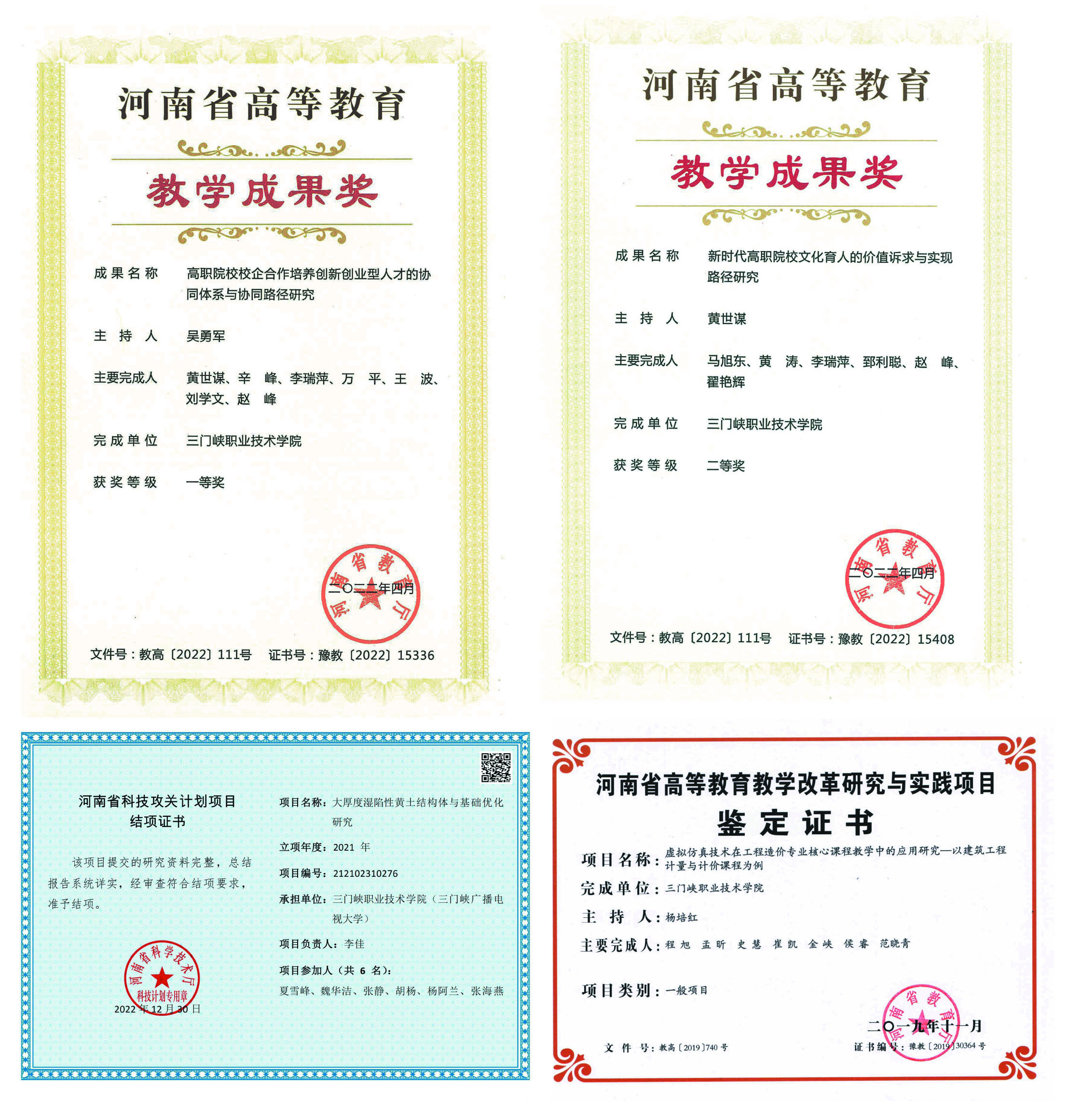 教师团队获省级科研成果奖、各级各类课题结项及多项发明专利