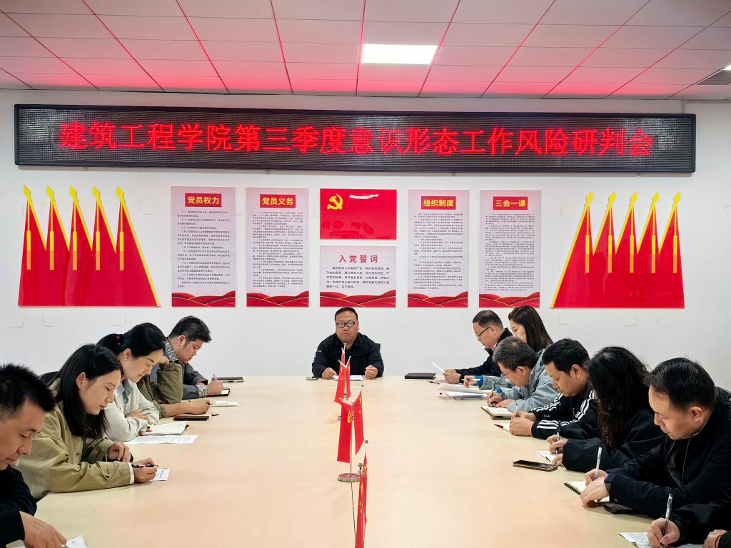 为深入学习贯彻习近平新时代中国特色社会主义思想,全面落实立德树人根本任务,进一步筑牢校园意识形态安全防线,9月23日,pp电子游戏平台官网在应工校区51225召开2025年第三季度意识形态工作风险研判会议。学院党政领导班子成员、各党支部书记、教研室主任、辅导员代表及统战对象代表参加会议,会议由党总支书记乔改伟主持。