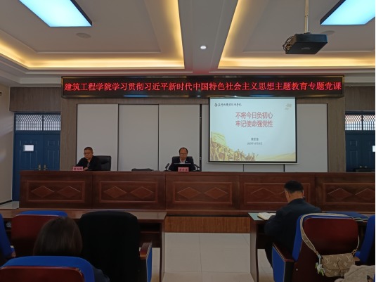 10月26日,pp电子游戏平台官网邀请联系院部校领导、党委委员、副院长黄世谋教授为全体教职员工上题为“不将今日负初心,牢记使命强党性”的主题教育专题党课,党总支负责人雷旭锋主持。