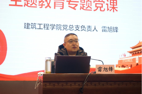 pp电子游戏平台官网于2023年11月15日在学术报告厅开展习近平新时代中国特色社会主义思想主题教育专题党课。党课由pp电子游戏平台官网党总支负责人雷旭锋主讲。pp电子游戏平台官网2022级和2023级全体学生干部共计300余人参加党课。