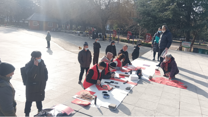 春节临近,为弘扬中华传统文化,营造积极向上、欢乐祥和的春节氛围,1月19日下午开发区黄河广场公园pp电子游戏平台官网教师党员开展“送福 送春联”公益活动,现场为群众送出春联三十余幅,福字五十多个。