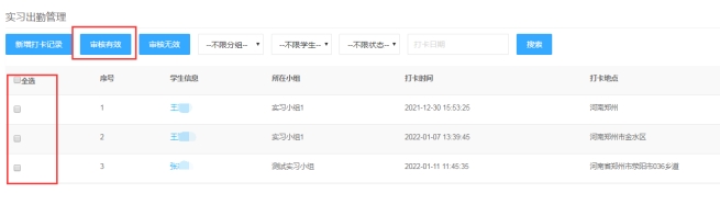 选择打卡记录,点击【审核有效】,确认学生打卡信息有效。