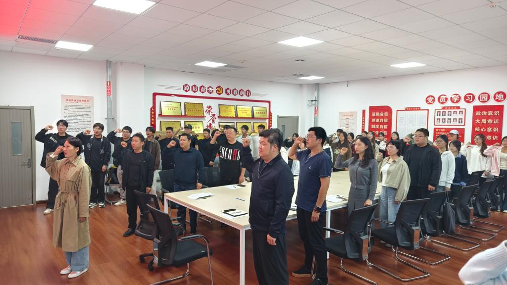 活动最后,在领誓人李梦思同志的带领下,大家面对鲜红党旗,重温入党誓词。铿锵有力的誓言回荡在会议室,让每位同志再次铭记入党初心,强化了身份认同和责任担当。