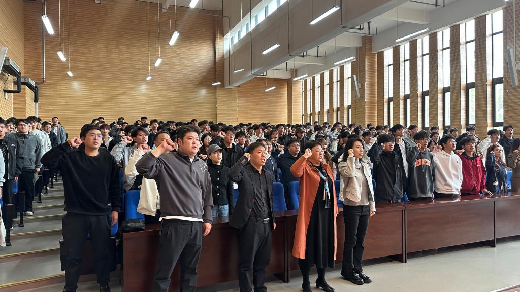 最后,学生代表安怡韩发出文明养成教育倡议,号召全体同学以自身为起点、从点滴小事践行,主动遵守文明规范,携手共建文明校园。全体参会师生共同进行文明承诺宣誓,用铿锵誓言传递出践行文明公约、共筑和谐校园的坚定决心。