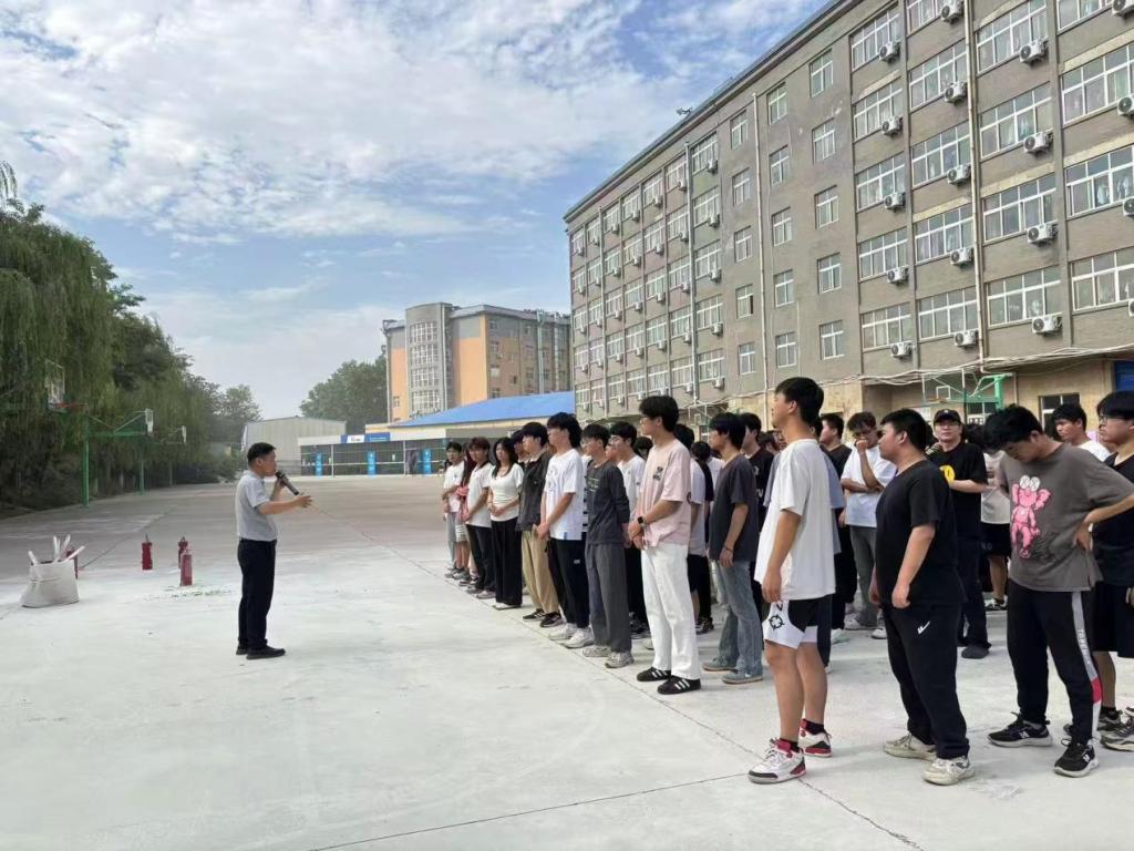 接下来,师生有序前往演练场地。在安全员的指导下,大家分组进行灭火器实操:调整站位、对准火源、规范按压从最初的紧张生涩,到逐渐熟练精准,每个动作都反复打磨。焦国强讲师现场巡查,纠正姿势、强调安全细节,确保每位参与者真正掌握灭火技能。火光熄灭的瞬间,掌声与成就感交织,实战成效显著。