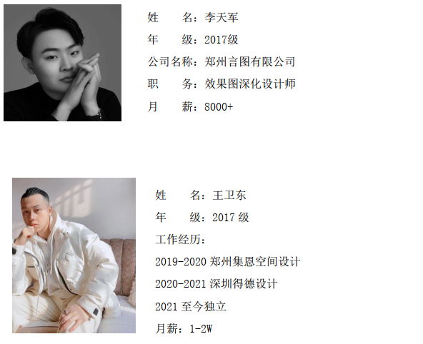 从专业 2003 年开办至今,已为装饰装修行业输送近 5000 名优秀设计师,经过若干年的积淀,他们成就了自己的梦想,成为了企业老总或行业翘楚,有的经过深造学习,实现了学历提升的初衷。大家一起努力,我们的辉煌,还需你们继续来谱写!