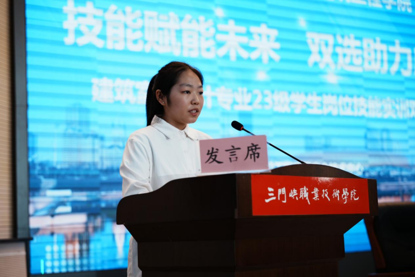 企业代表三门峡盛元装饰设计有限公司总经理张军承诺提供真实项目实践平台,学生代表吴思睿宣誓严守职业规范、苦练专业技能,双向奔赴引发热烈共鸣。本次双选会创新采用“实训-就业”一体化机制,覆盖设计、施工、材料、新技术等多个领域,企业现场提供实训岗位,180余名学生全员达成实训意向。