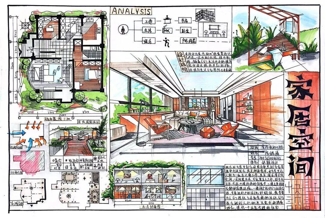 为夯实建筑室内设计专业学生的手绘表达基础,弥补数字化设计背景下手绘能力弱化的短板,检验《建筑表现技法》课程教学成效,展现学子的设计创意与手绘功底,近日,建筑室内设计专业精心筹备的《手绘表现技法》作品成果展顺利开展。