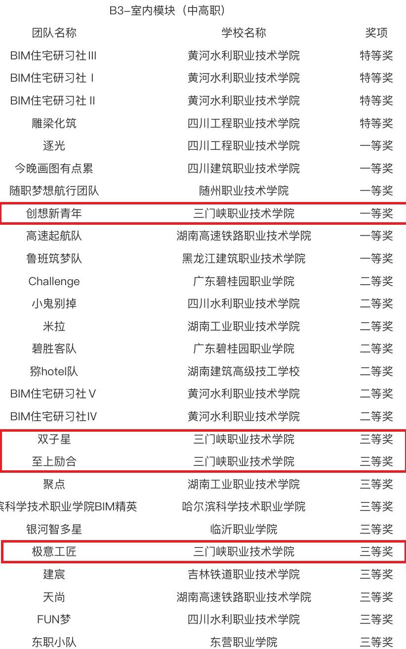 为培养基于BIM技术的智能建造人才,激发学生实践创新能力和钻研专业知识的热情,加深对专业技能和行业新技术的掌握,提高大学生就业与创业能力,中国建设教育协会举办了2021年“鲁班杯”全国高校BIM毕业设计作品大赛,旨在共同推进工程教育改革,培养技术技能人才,为建筑业转型升级提供人才保障。大赛由中国建设教育协会教育技术专业委员会、重庆交通大学承办,上海鲁班软件股份有限公司、上海红瓦信息科技有限公司协办。2021年6月7日,决赛圆满结束,在pp电子pp电子游戏平台官网王亚楠、王琴、王约慧、尚海云四位老师的指导下,2019级建筑装饰工程技术学生荣获一个一等奖、三个三等奖: