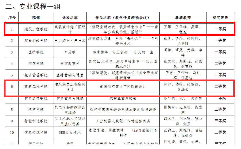 2022年4月2日,学院教学能力大赛落下帷幕。建筑装饰教研室共两支团队参加了现场决赛,经激烈角逐,王亚楠老师、王琴老师的作品《装配全新时代,筑梦绿色未来——青年公寓装饰施工图设计》荣获专业课程一组“一等奖”、尚海云老师、林琳老师的作品《老旧住宅室内空间改造设计》荣获专业课程一组“二等奖” 。教学能力比赛已成为pp电子为教师量身打造的专业成长创新的精进模式,是落实立德树人,深化职业院校教师、教材、教法改革的必然要求。通过此次比赛,推动了专业老师们创新教育教学理念,提高了教学能力和信息素养,促进了教师综合素质、专业化水平和创新能力的全面提升。