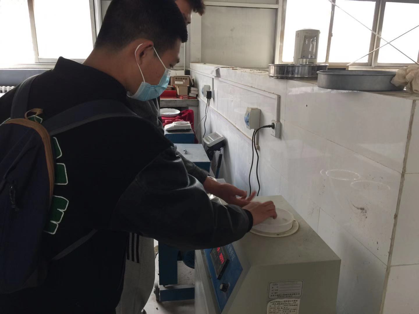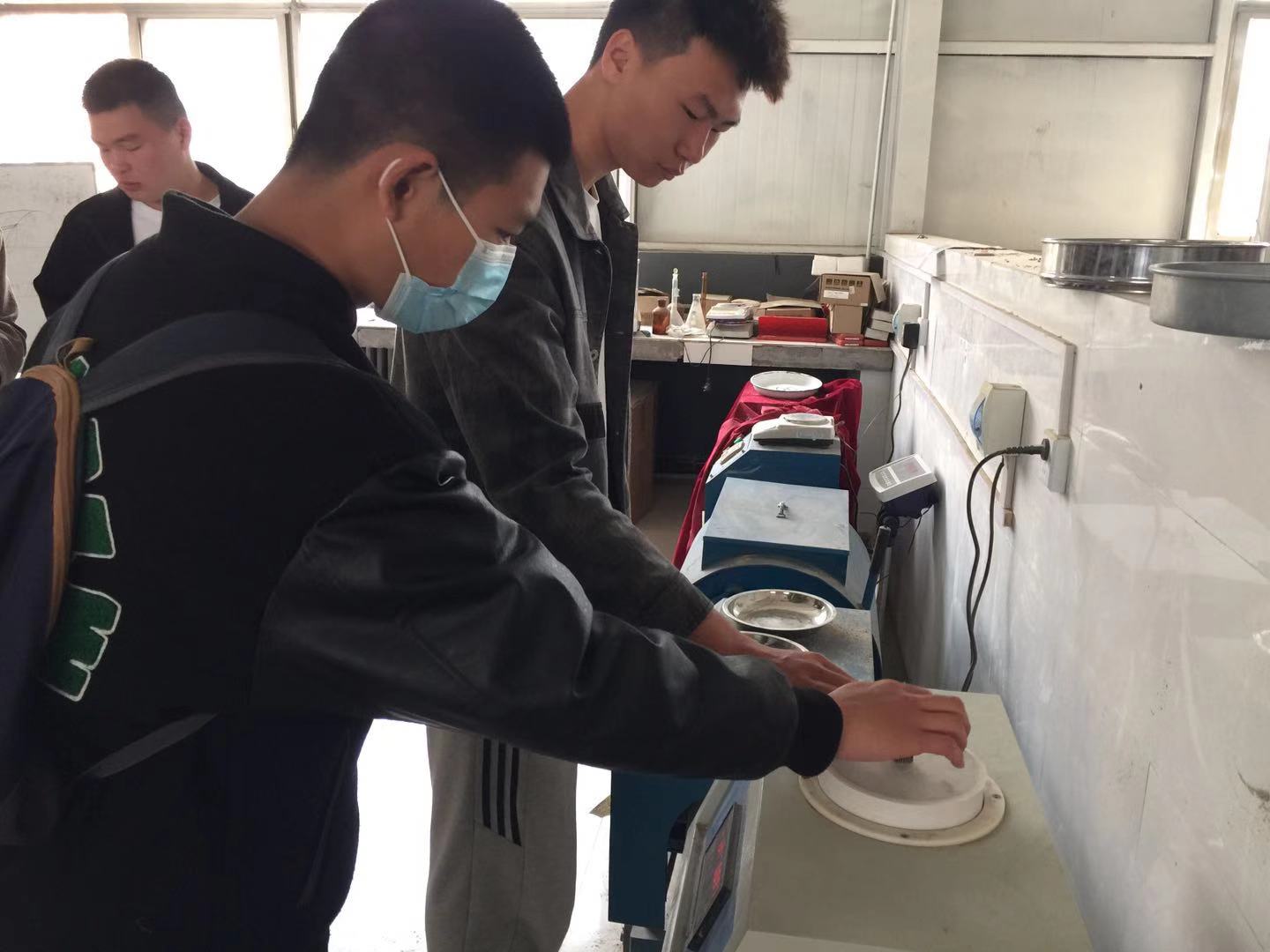 路桥专业学生通过负压筛析仪检测水泥细度,从而队水泥特性进行检测。