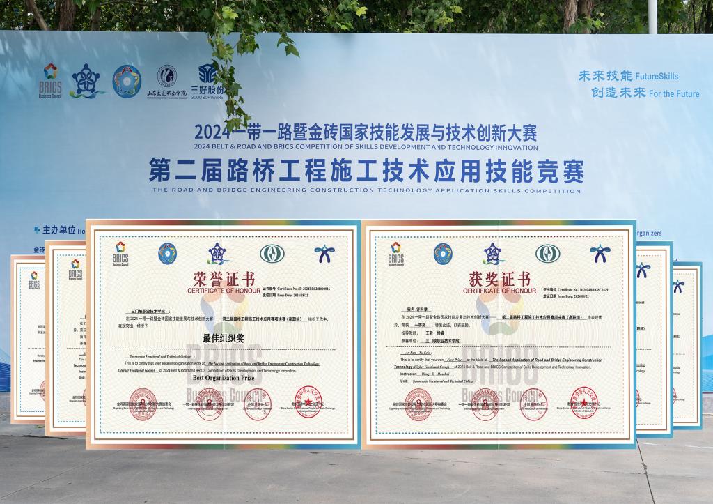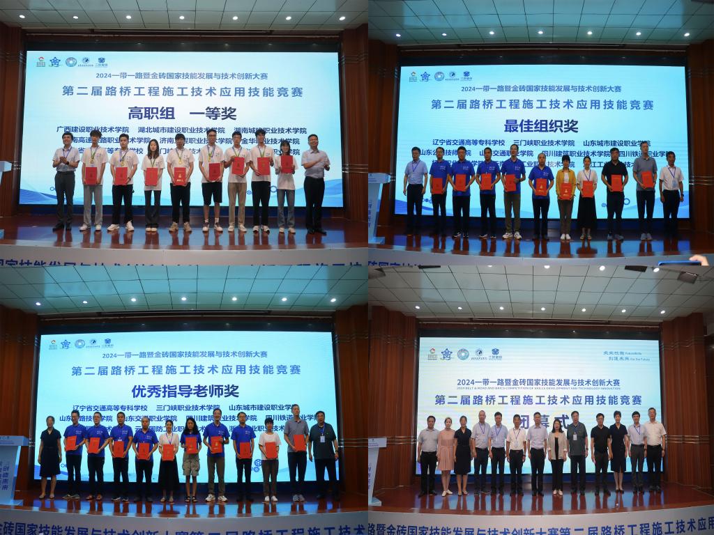 2024年8月20-22日,2024一带一路暨金砖国家技能发展与技术创新大赛第二届路桥工程施工技术应用赛项(BRICS-ST-028)全国总决赛,在山东交通职业学院隆重举行。本次路桥赛项决赛经过前期覆盖全国院校的校园赛,到665所院校参与的区域选拔赛,最终决出了来自全国的200余所院校参与角逐,共有包括国际选手在内的282支队伍的千余人参加此次决赛。 比赛分为中职组、高职组、本科组、国际组,来自全国28个省(区)、282所院校的282支队伍参加了本次决赛。经过激烈角逐,大赛于8月22日成功落下帷幕。该项赛事为两人一组的团队赛,pp电子参赛队,在师生共同努力下,一路披荆斩棘斩,最终获得高职组一等奖(金牌),同时pp电子获得大赛“最佳组织奖”。