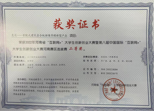 pp电子智能建造专业吴泽老师在装配式建筑行业中不断创新,改进技术。他在2022年与三门峡科创大厦项目合作的过程中研发了一种专门针对装配式建筑施工的新型吊装模板(惠筑--装配式建筑叠合板拼缝吊模新型产品 )荣获2022年河南省“互联网+”大学生创新创业大赛暨第八届中国国际“互联网+’大学生创新创业大赛河南赛区选拔赛 二等 奖。