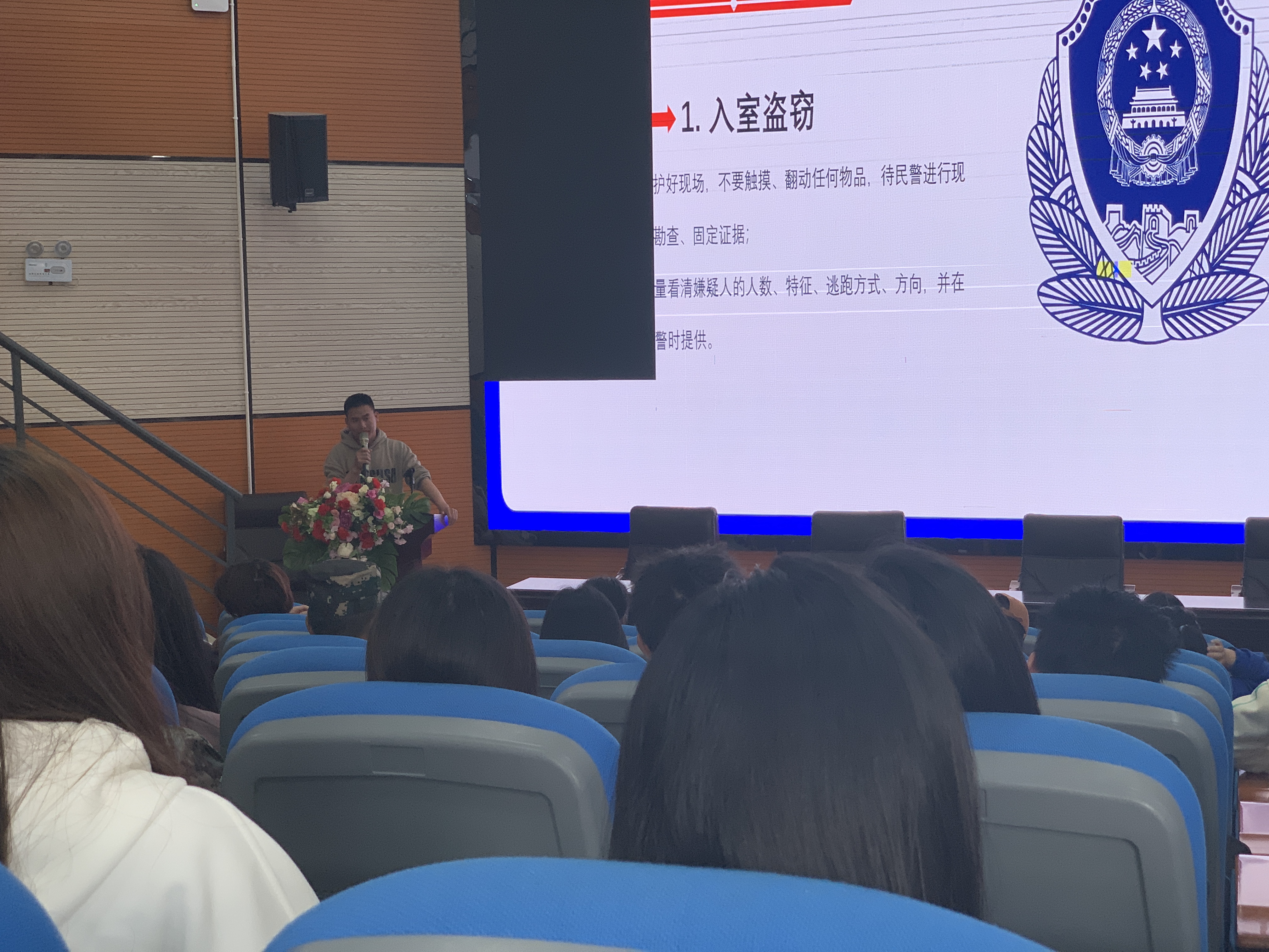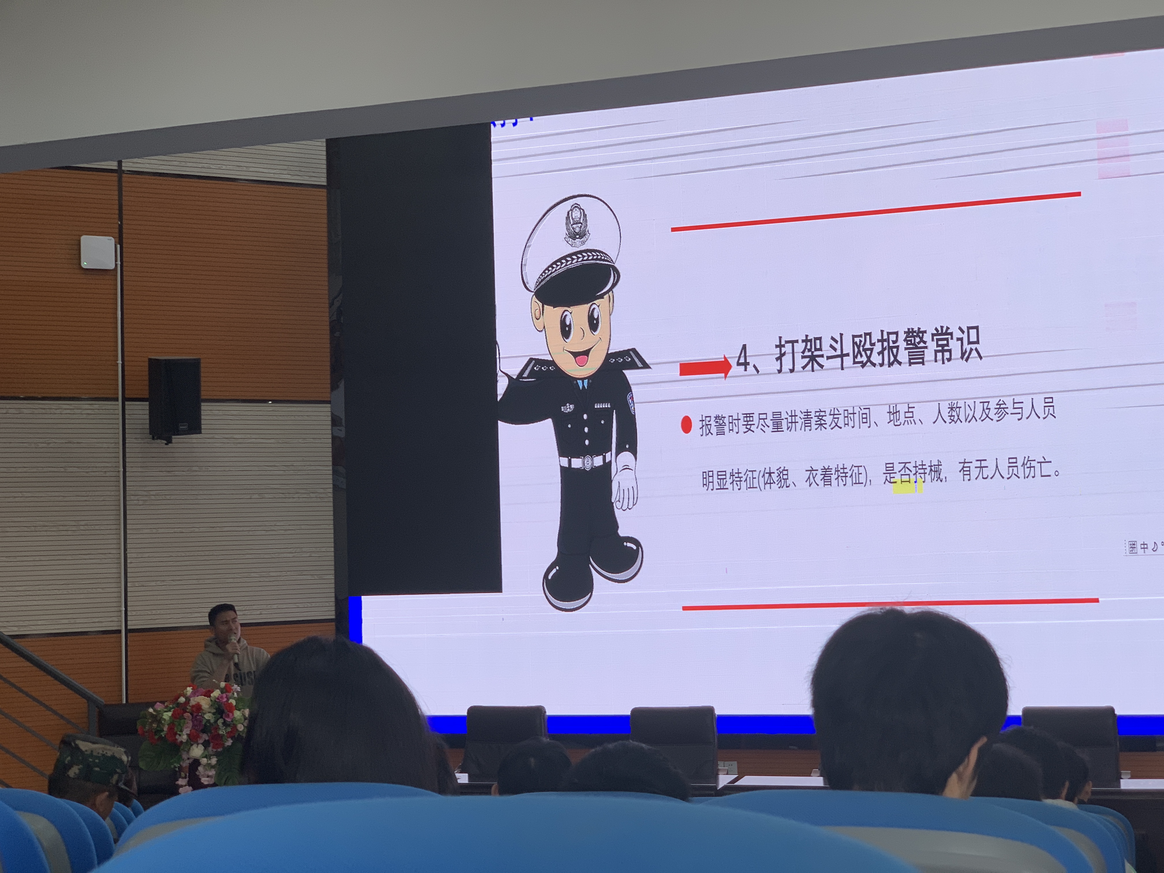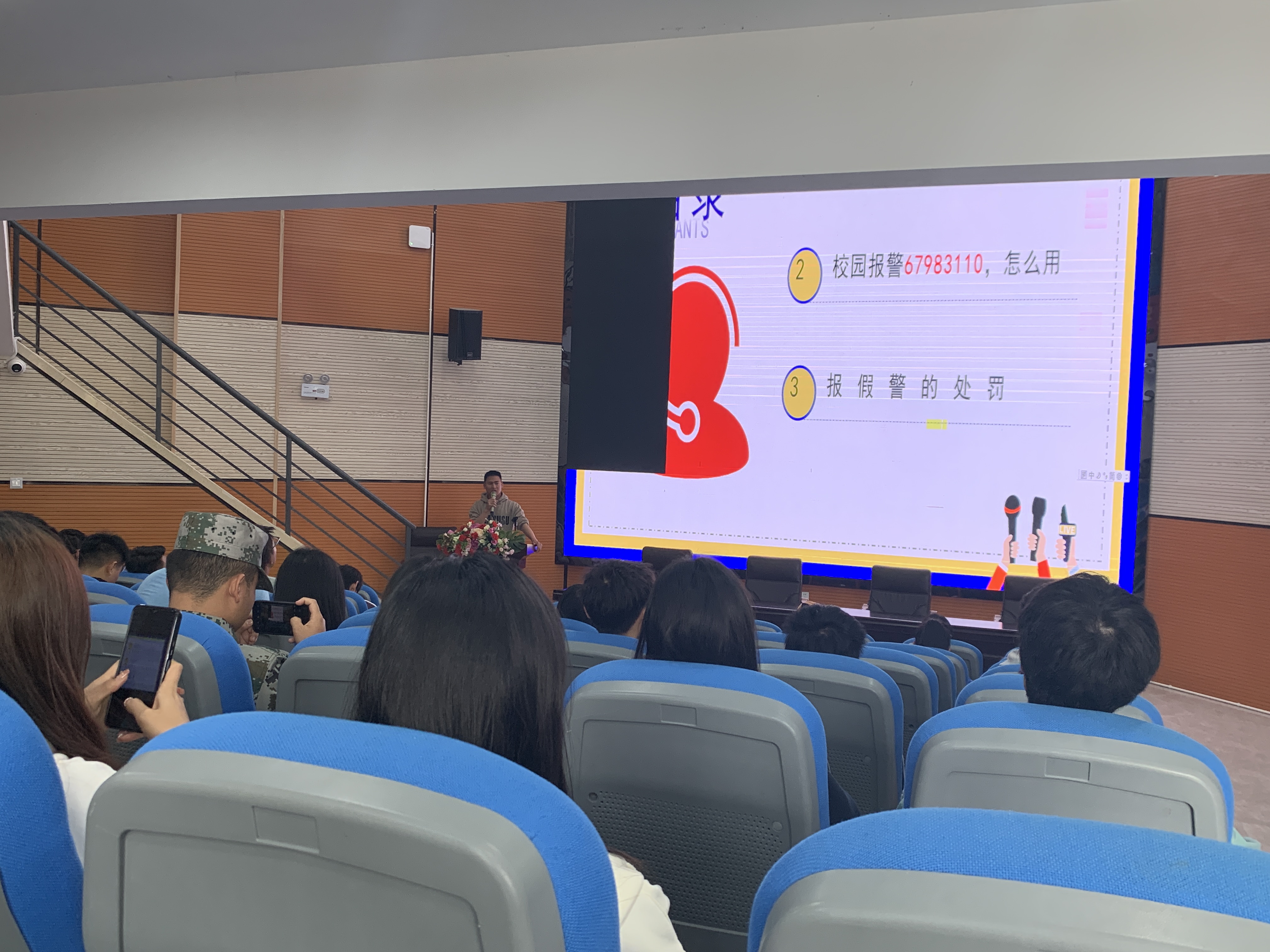 本次讲座围绕“属地报警67993110,怎么打?校园报警67983110,怎么用?”展开。让全体学生更加深入了解报警服务中心、信息查询系统、接警功能、联动功能、校内外联动、服务功能、报假警的处罚等相关知识。通过警情案件事件、日常生活及相关急救常识、事故责任认定等多个方面进行了深入讲解,帮助学生树立正确的维权意识和法律意识,引导学生正确使用校园“110”。