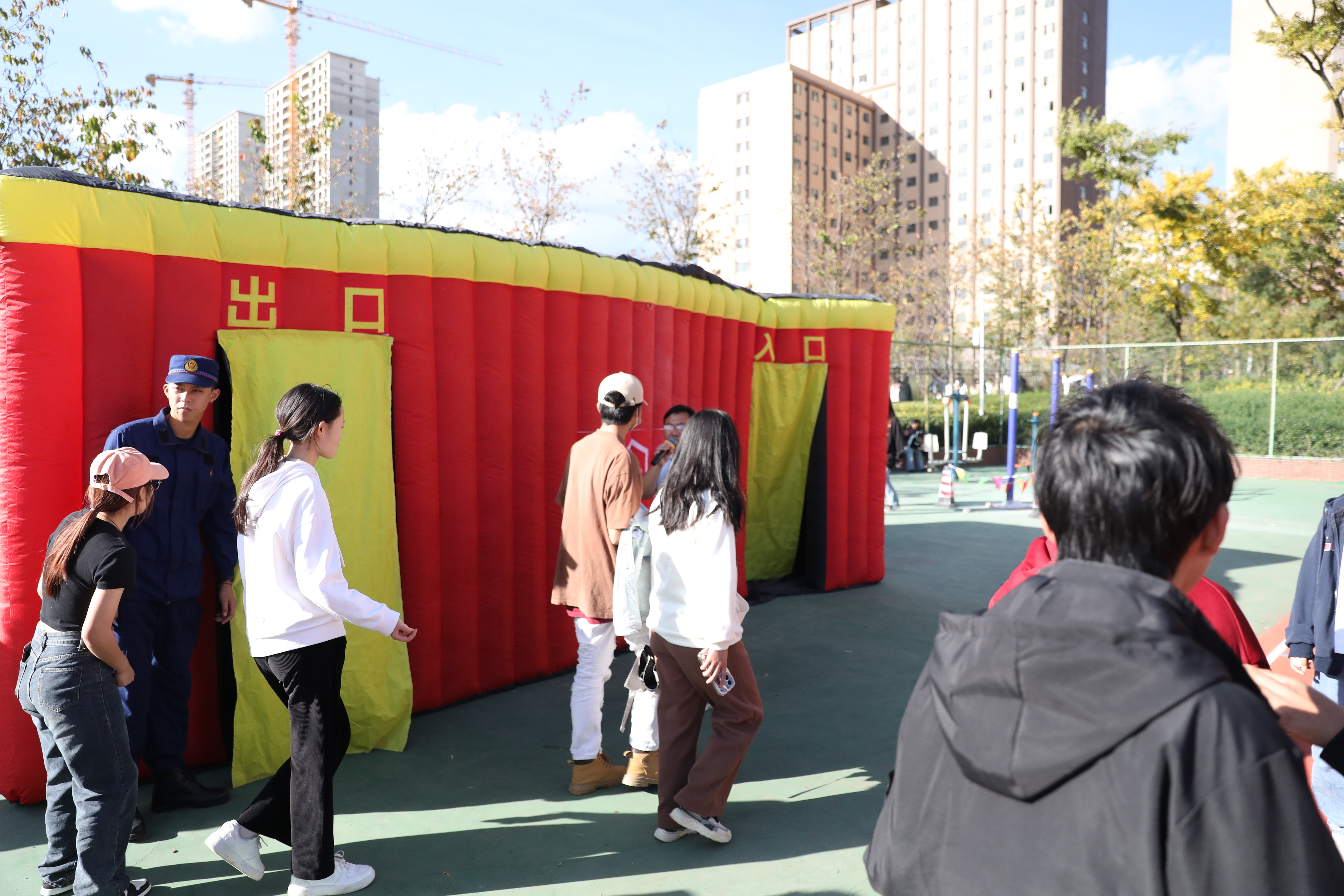 最后,进行了模拟逃生舱感受体验,掌握了火灾逃生自救技巧。