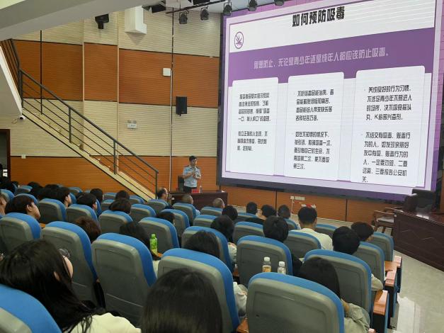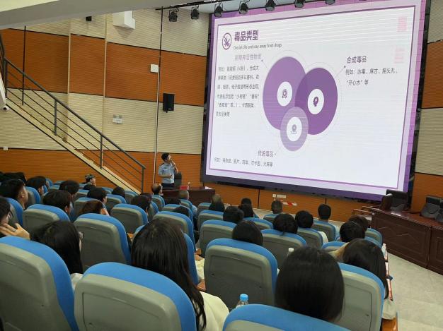 活动一:校园禁毒知识宣传专题讲座。云南省第五强制隔离戒毒所教育矫正中心潘紫东警官以“珍爱生命,远离毒品”为题,采取线上线下相结合的方式,为全校师生从戒毒所里干什么、认识新型毒品、毒品带来的危害、如何预防吸毒等方面带来精彩授课。出席本次讲座的领导有云南省第五强制隔离戒毒所教育矫治科副科长甘榜峨警官、云南省第五强制隔离戒毒所一大队副大队长李卫明警官、嵩明职教新城管理委员会办公室主任陈富义主任,学校党委书记张向英同志、副校长武绍宏同志,各职能部门、教学单位负责人以及师生代表共同参与。讲座以“禁毒宣誓”收尾,全员起立,共同宣誓,入脑入心,引导师生真正做到远离毒品,共同维护社会和谐稳定。