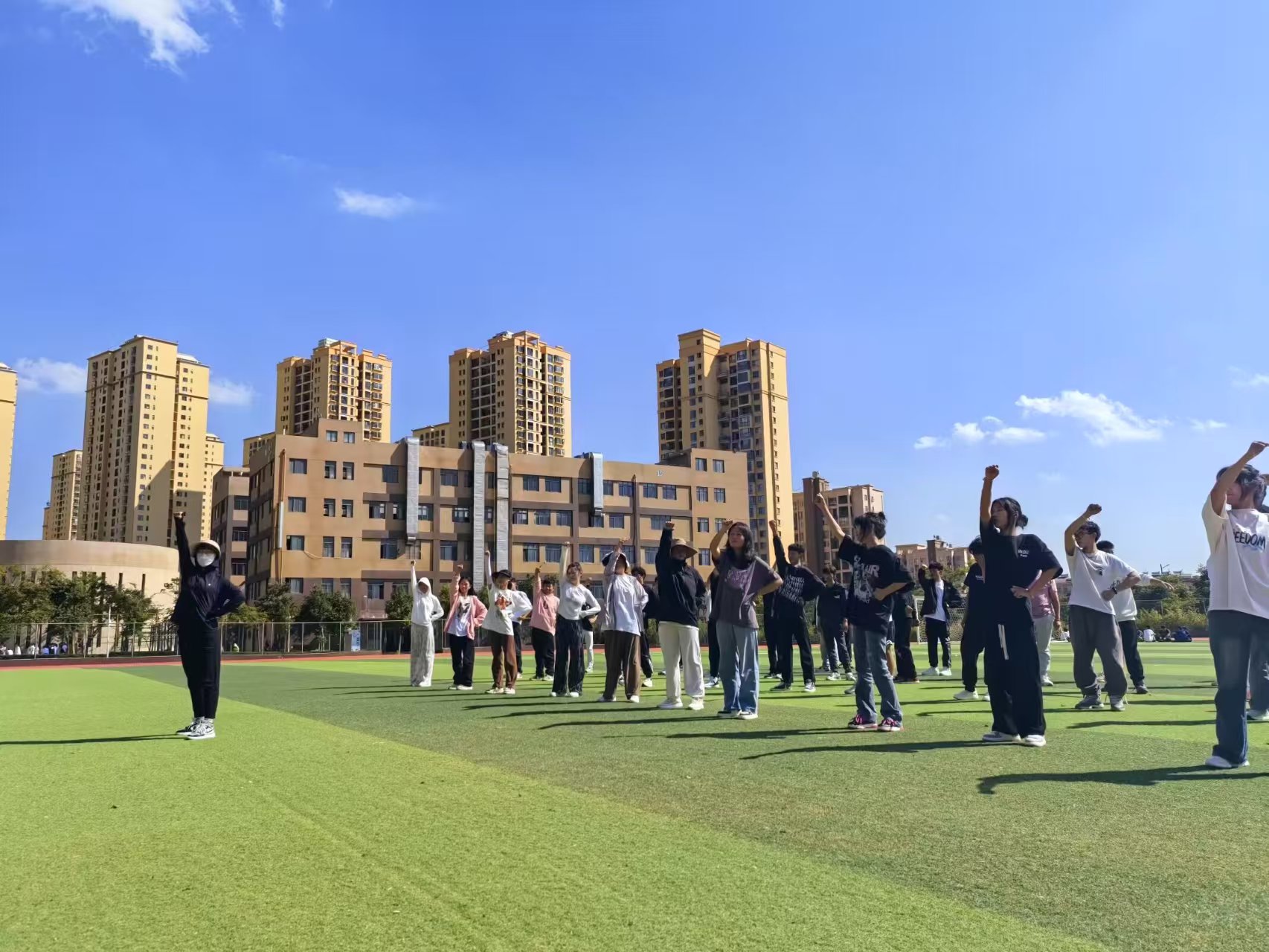 体育课堂上,王学磊老师以《八段锦》为教学内容,带领学生们开启了一场传统健身文化之旅。在舒缓的音乐节奏中,老师们跟随王老师的示范,一招一式尽显专注与认真,不仅掌握了八段锦的基本动作,更在传统文化的滋养中,实现了身心的和谐发展。8.jpg