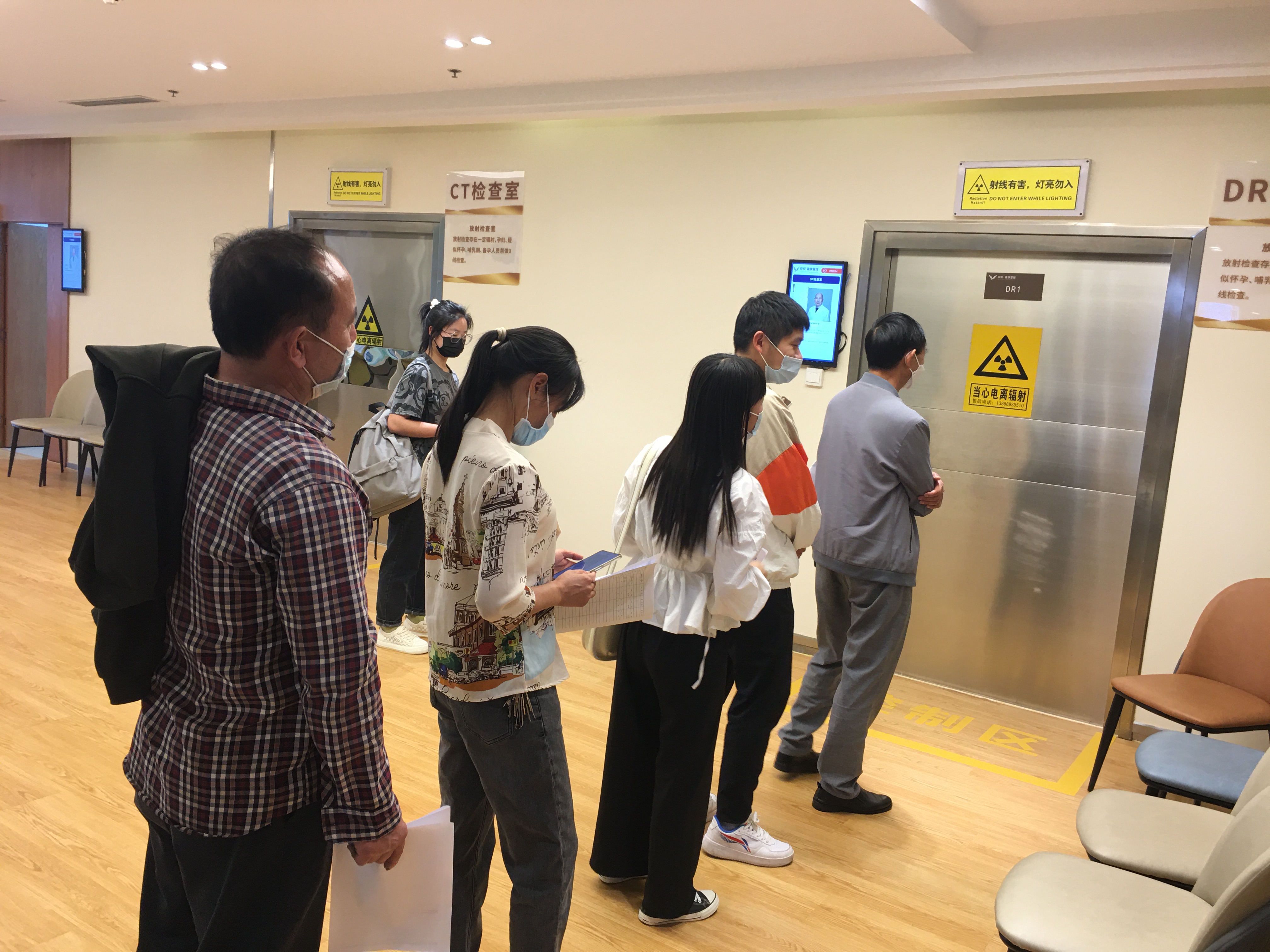 5月28日上午,教职员工陆续到达昆明菲悦健康体检中心,排队到前台领取体检登记表,按照流程进行体检。
