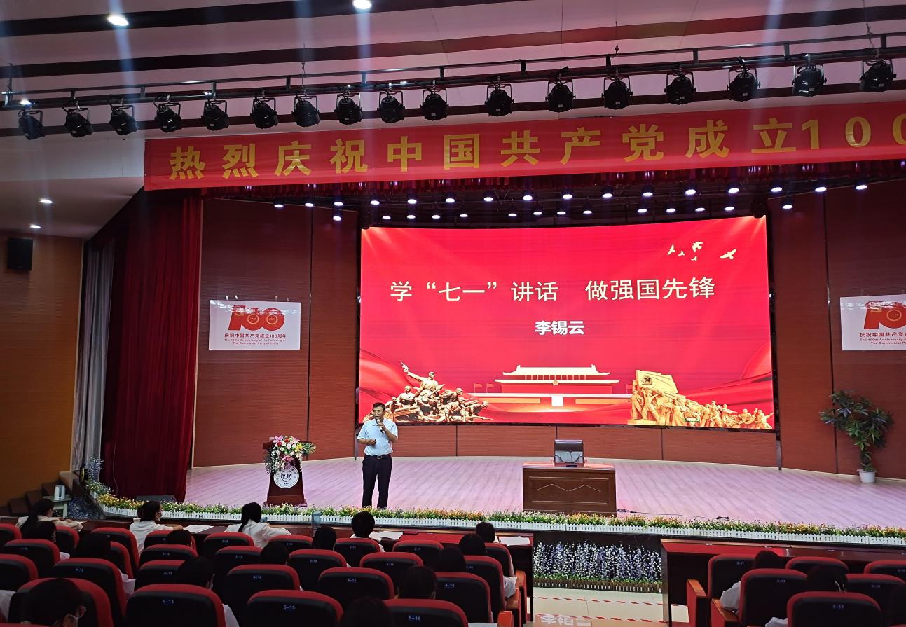 李锡云校长说到:“党的百年丰功伟绩经历了从开天辟地、改天换地、翻天覆地到惊天动地的大变化,这是中华民族的伟大光荣,是中华人民的伟大光荣,是中国共产党的伟大光荣,诠释的是一份坚持真理,坚守理想;践行使命,担当使命;不怕牺牲,英勇斗争;对党忠诚,不负人民的伟大建党精神,我们需要将其践行于心,才能迎接