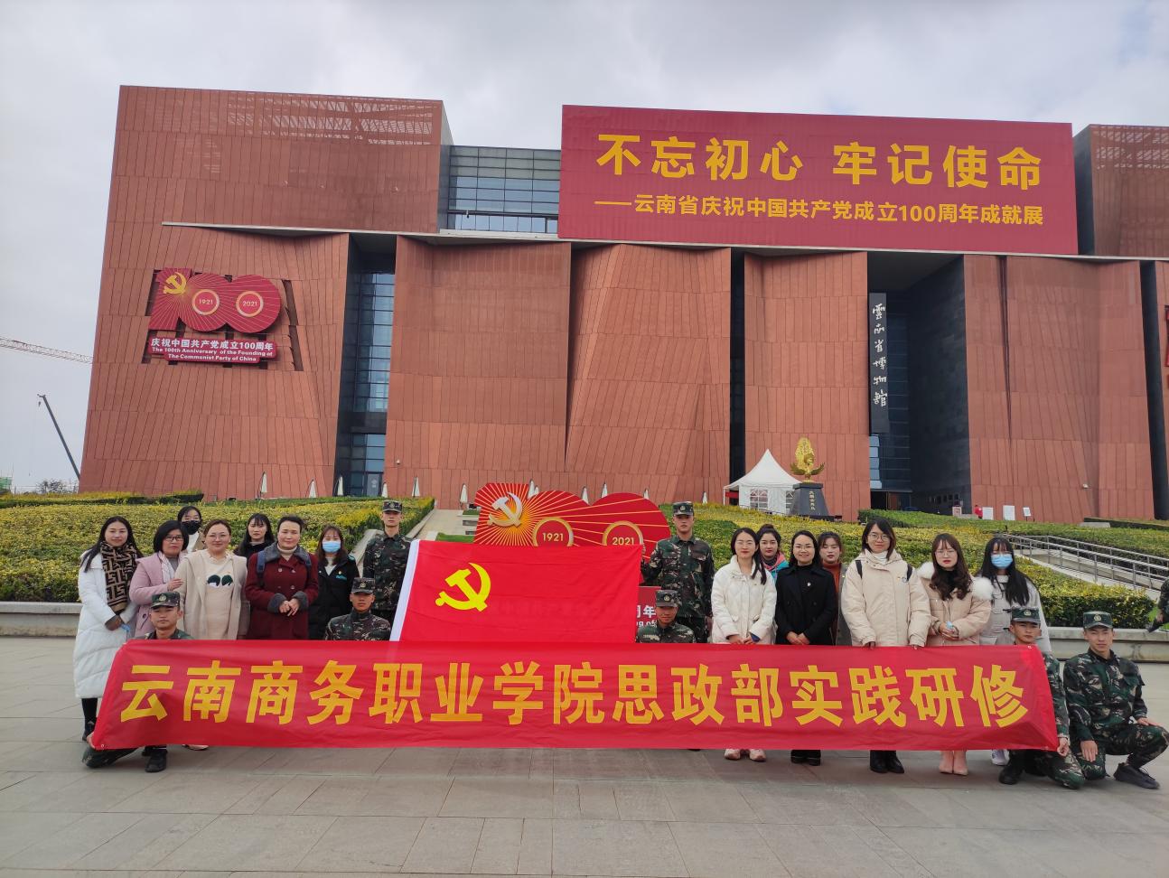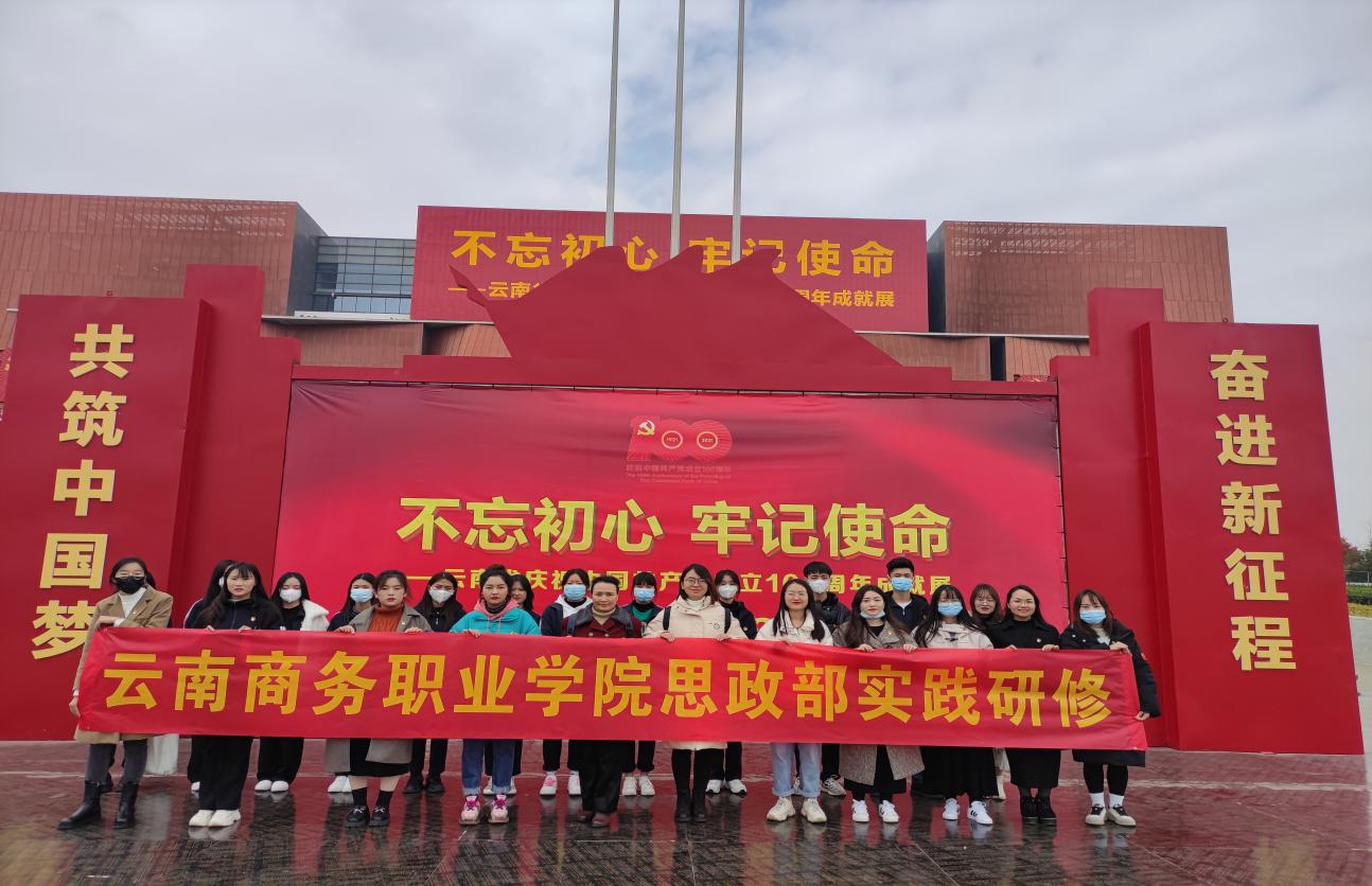 2021年12月2日为进一步了解中国共产党成立100周年所取得的伟大成就,贯彻落实“不忘初心,牢记使命”精神。思政部全体教师到云南省博物馆实践研修,观看百年党史历程,全面深入了解百年来在党的领导下走过的奋斗历程、取得的辉煌成就。