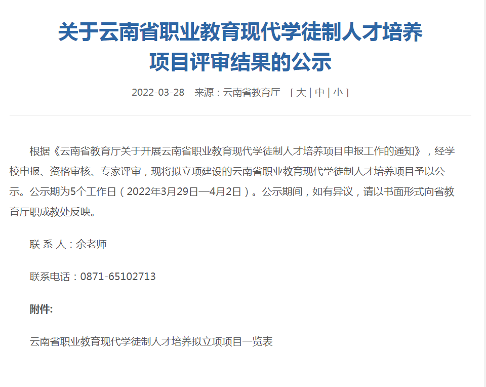 【喜报】Ky开元集团5个专业获批云南省职业教育现代学徒制人才培养项目立项建设