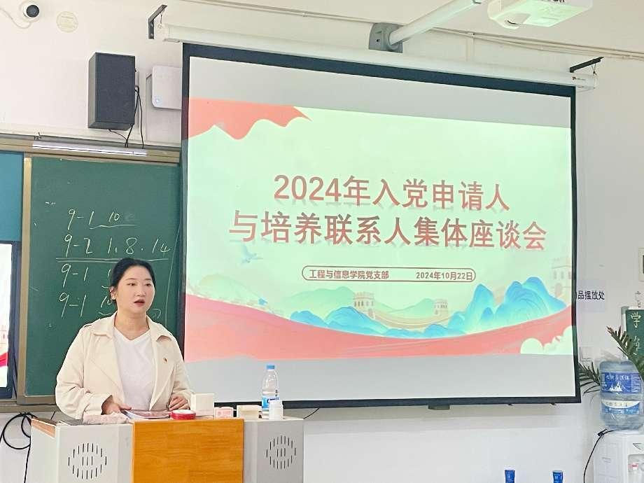 秋高气爽的季节里,工程与信息学院党支部迎来了一场特别的见面会。2024年1022日,工程与信息学院党支部组织了一次入党申请人与培养联系人的见面活动,地点设在学院7栋106。此次活动旨在加强党的基层组织建设,促进党员队伍的发展壮大,同时也为有志于加入中国共产党的优秀同志提供了一个展示自我、交流思想的平台。
