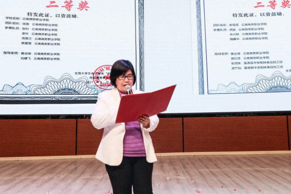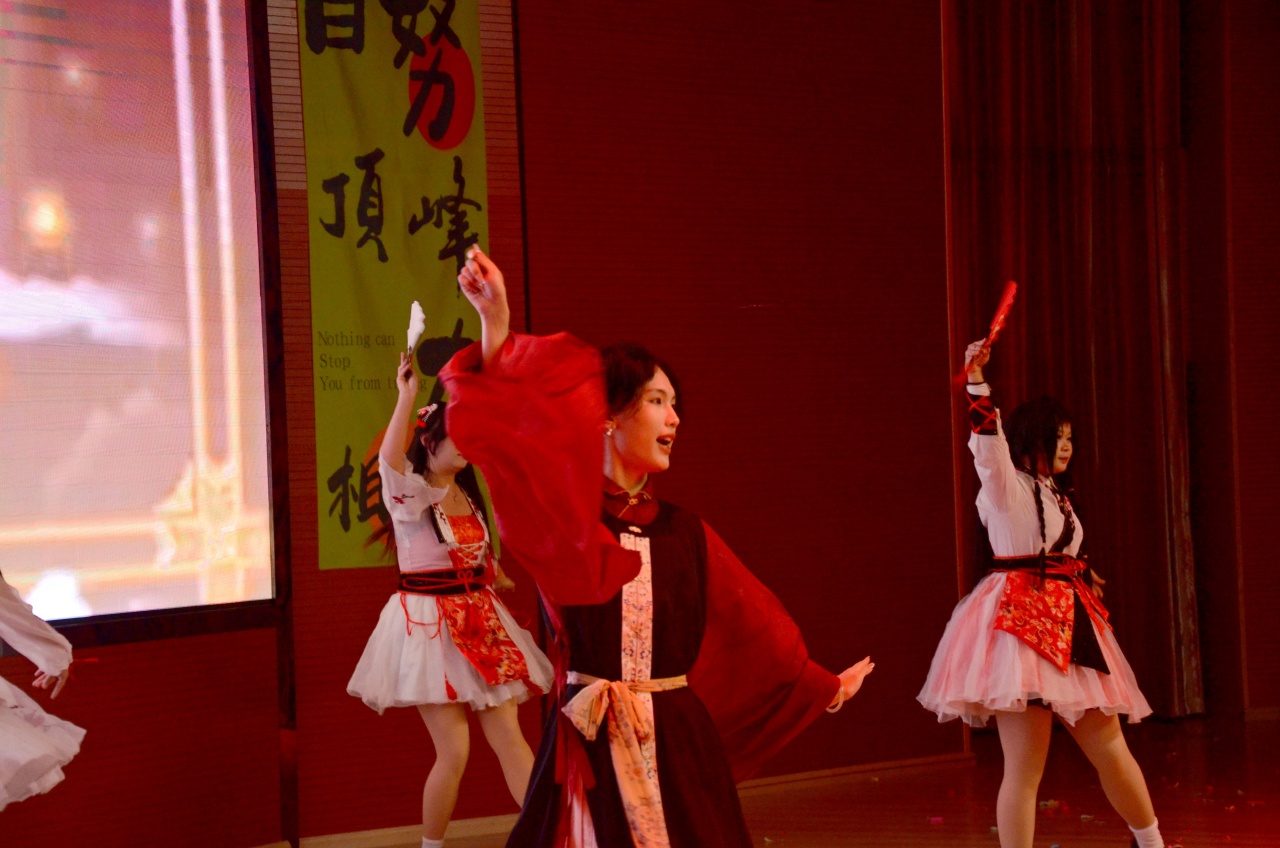 教师代表黄会端上台致辞。师者勉励学子勤学奋进,学子立志不负时光,期望与梦想是今晚的华章。