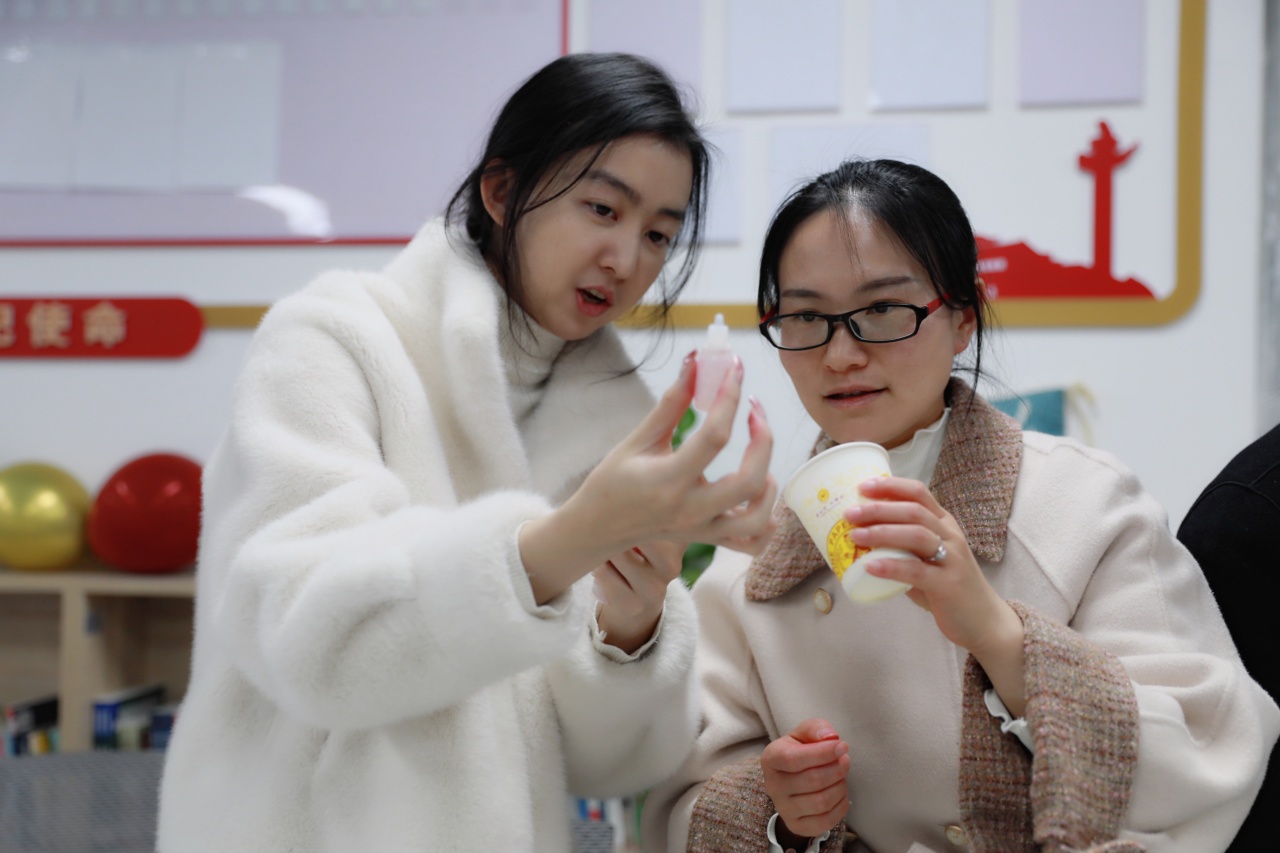 “我选了正红色,希望新的一年事业红红火火!”老师们一边分享创作心得,一边展示成品。智慧健康医学院许倩老师感慨:“亲手制作口红不仅是新奇的体验,更让我感受到女性对美的追求,本质是对生活的热爱与掌控。”