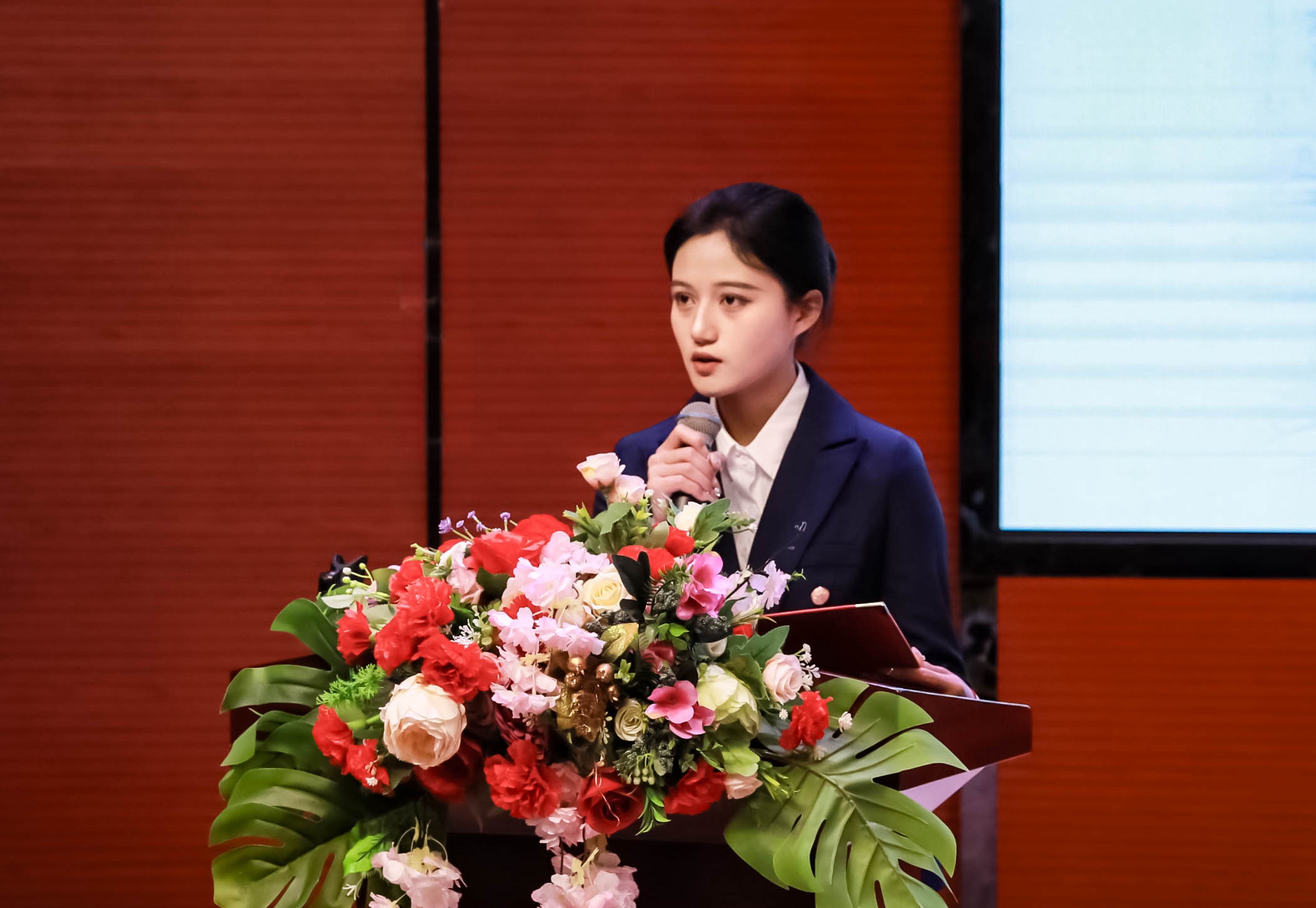 学生代表普丽平结合自身学习经历,分享了在飞鹰班的成长感悟。她谈到,飞鹰班课程设计注重理论与实践结合,帮助学员提前适应职场环境。同时个性化指导让大家对职业发展有了清晰规划。自己将珍惜实习机会,以“飞鹰精神”为引领,在岗位上践行责任与担当。