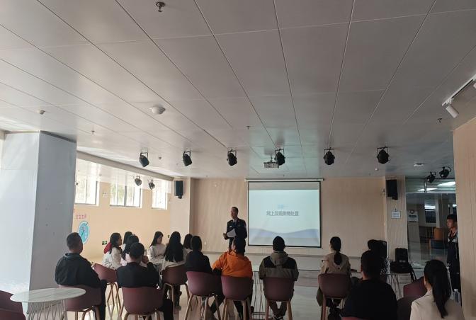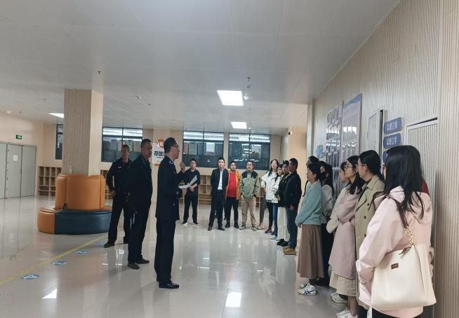 讲座结束,统战部、宣传部、学生处、总务处等相关部门工作人员在章警官的引领下前往一站式社区活动中心观摩安全事件应急处置演练。演练设置了网上发现舆情处置和现实发现不良现象两个情景,首先由章警官进行现场分析讲解,明确每个环节相关人员的职责,然后由班主任/辅导员、主管副院长、保安队、校卫队等人员角色扮演进行实战演练。章警官对演练作出指导,并强调本次演练的重要性。