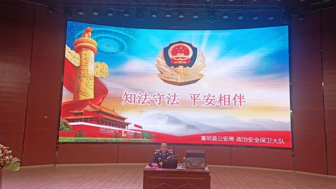 为深入贯彻落实习近平法治思想,进一步提升全校师生法治意识,强化校园法制建设,3月27日下午,嵩明县公安局政治安全保卫大队一级警长章亚群警官带着精心准备的“法制大礼包”走进我校,为以各支部发展对象及党员为代表的师生带来了一场“干货”满满的法制盛宴。本次法制讲座由副校长武绍宏主持。
