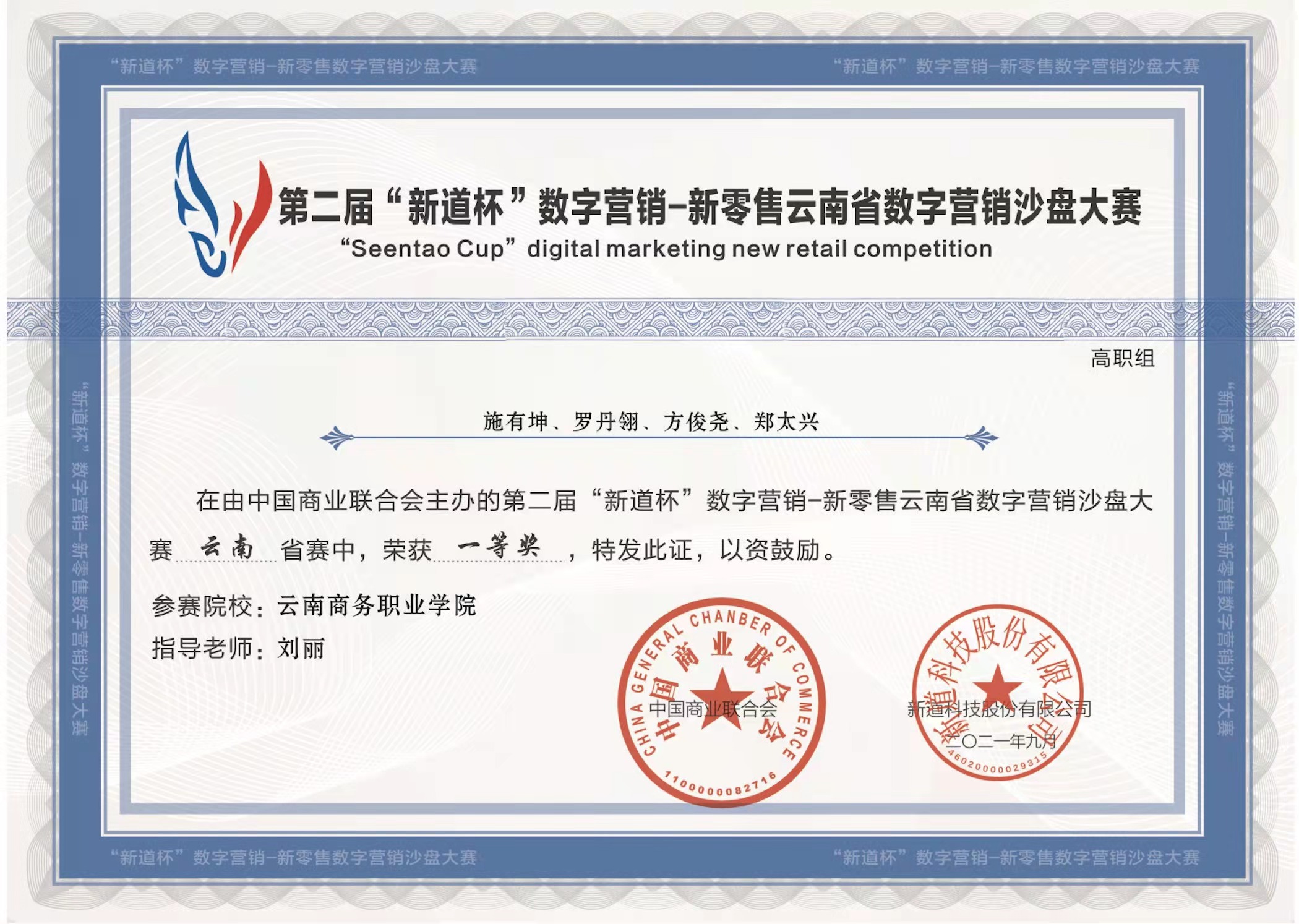 中级税务会计师,2023年被评为云南省民办教育优秀教师、大数据与会计专业优秀教学团队负责人。